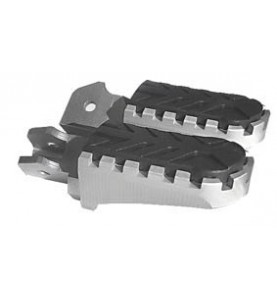 Los pedalines cuentan con dos regulaciones para ajustarse a las dimensiones del piloto y su estilo de conducción. Permite buen agarre y posee capacidad de autolimpieza. Mecanizados en Aluminio 6061 T6, resultan livianos y resistentes. Apto para usar con o sin el componente de apoyo blando y antideslizante, según se utilice como Touring u Off-road.