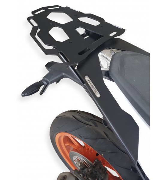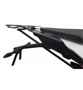 Apto para instalarle un top case, o bien utilizarlo con una red o sogas para equipaje. Realizado en metal cortado por láser, con pintura micro-texturada negra.