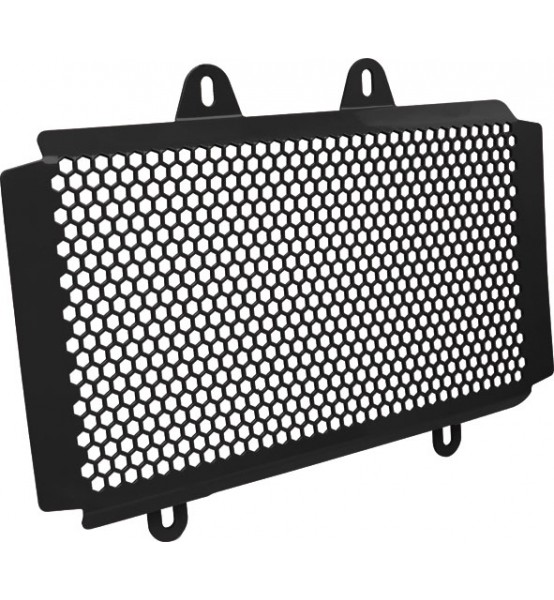 El protector de radiador asegura una protección eficaz contra piedras que pueda despedir la rueda delantera. Está realizado en aluminio, liviano -tan solo 150 gramos- y resistente. Cortado por tecnología láser, de gran precisión. Fijado en los puntos de anclaje disponibles en la moto. No requiere bulonería adicional. De muy fácil instalación.