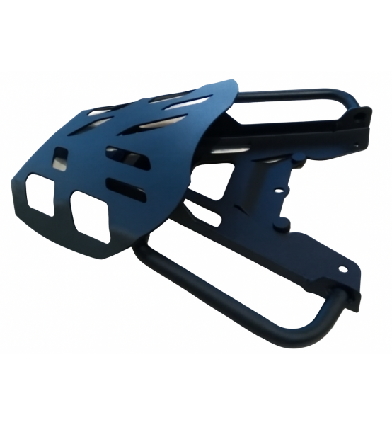 Apto para instalarle un top case, o bien utilizarlo con una red o sogas para equipaje. Realizado en metal cortado por láser, con pintura micro-texturada negra.