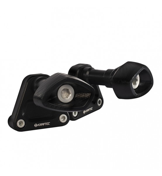 Realizado en un bloque único de Aluminio 6061 T6 mecanizado por CNC, y Delrin. Brindan protección a distintas zonas del carenado contra caídas leves y moderadas.