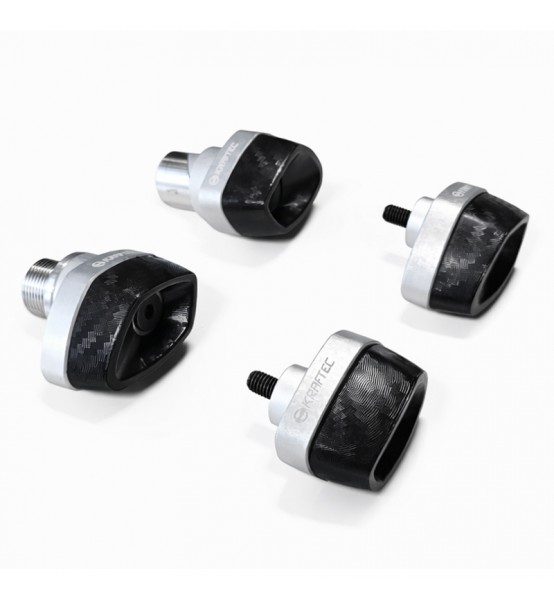 Los sliders protegen la horquilla delantera y el horquillón del tren trasero, ante eventuales caídas, protegiendo las piezas originales de la moto y evitando daños y costos de reparación. Mecanizados en Aluminio 6061 T6 y material plástico. Incluye bulonería en acero inoxidable.