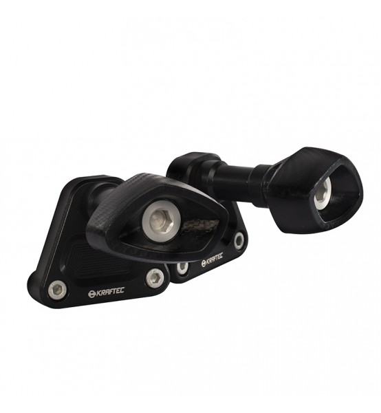 Realizado en un bloque único de Aluminio 6061 T6 mecanizado por CNC, y Delrin. Brindan protección a distintas zonas del carenado contra caídas leves y moderadas.