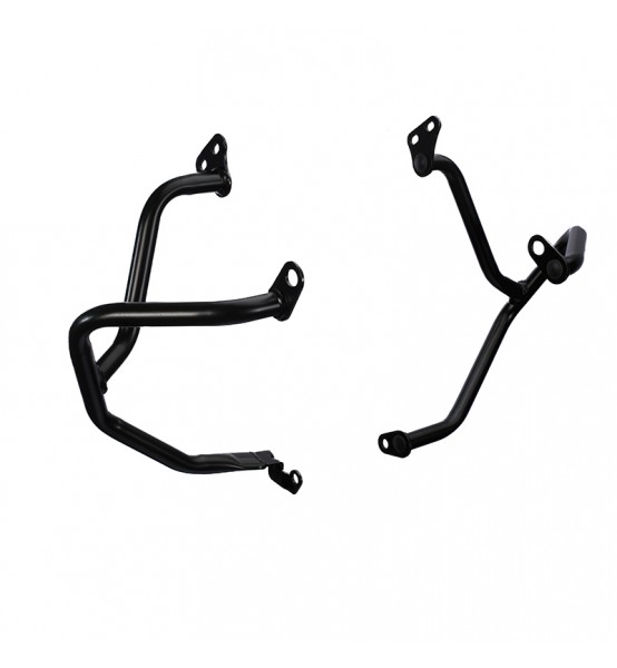 Las defensas laterales aseguran una protección eficaz contra golpes en eventuales caídas. Construidas en tubos en acero, capaces de soportar el uso extremo en off-road. Fijado en puntos de anclaje disponibles en la moto. Incluye toda la bulonería.